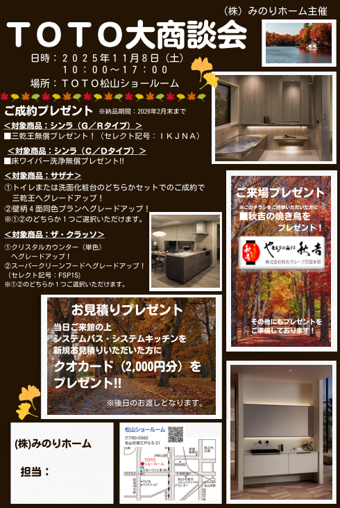 TOTO松山ショールームにて水回り商品の商談会を開催します✨