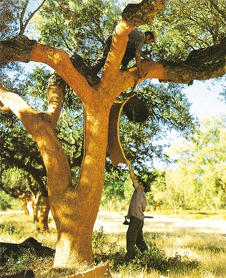 炭化コルクの原料となるコルク樫は、ポルトガル、スペイン、南フランス、北アフリカの地中海沿岸地域に群生しています。 木の寿命は約200年ですが、これを伐採せず、羊の毛を刈るように丹念に樹皮だけを剥ぎ取ります。